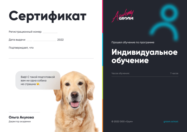 Академия была необходима, для обучения грумеров для салона Groom. Дарья Гоц подошла основательно к популяризации груминга через развитие культуры содержания домашних животных.